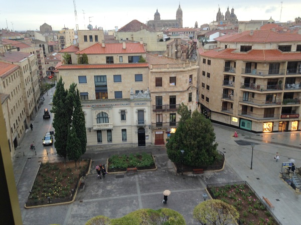 This morning we left Santiago and drove four hours to Salamanca. Easily finding our hotel on a splendid plaza in the center of town, with a parking garage just across the street, we settled into our room on the top floor with a panoramic view of the city.