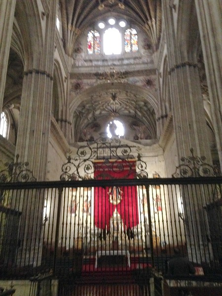After lunch, we toured the town, including the Plaza Mayor, the Cathedrals (old and new, one adjoining the other) and the university. Salamanca is a very handsome town with well-dressed stone buildings featuring distinctive wrought ironwork railings. The university “es las muchas antigua d’Espana” but insures a youthful presence. The wind began to pick up and it grew colder as we strolled, and a misty rain urged us back to the hotel.