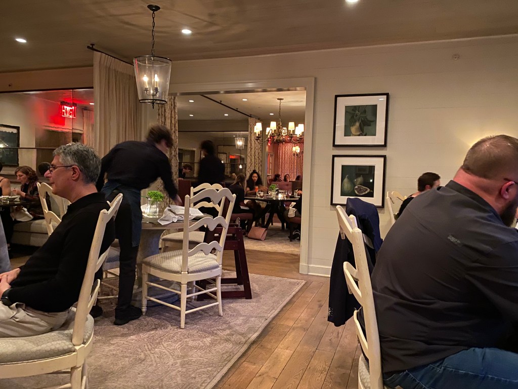 We started with a shared appetizer of duck croquettes, which were delicious. Stanley had steak, which was fine, but my porchetta was exceptional. The sauces and accompaniments were excellent. For dessert we shared a chocolate tart. Perfect. The wine I wanted, a Bandol for $50, was out of stock, so the sommelier proposed a 2016 Haut Medoc which was impressive. The markups on wine are very reasonable here, and though most on the list are in the hundreds of dollars, there are enough at the lower end that are worthwhile and priced very well.
