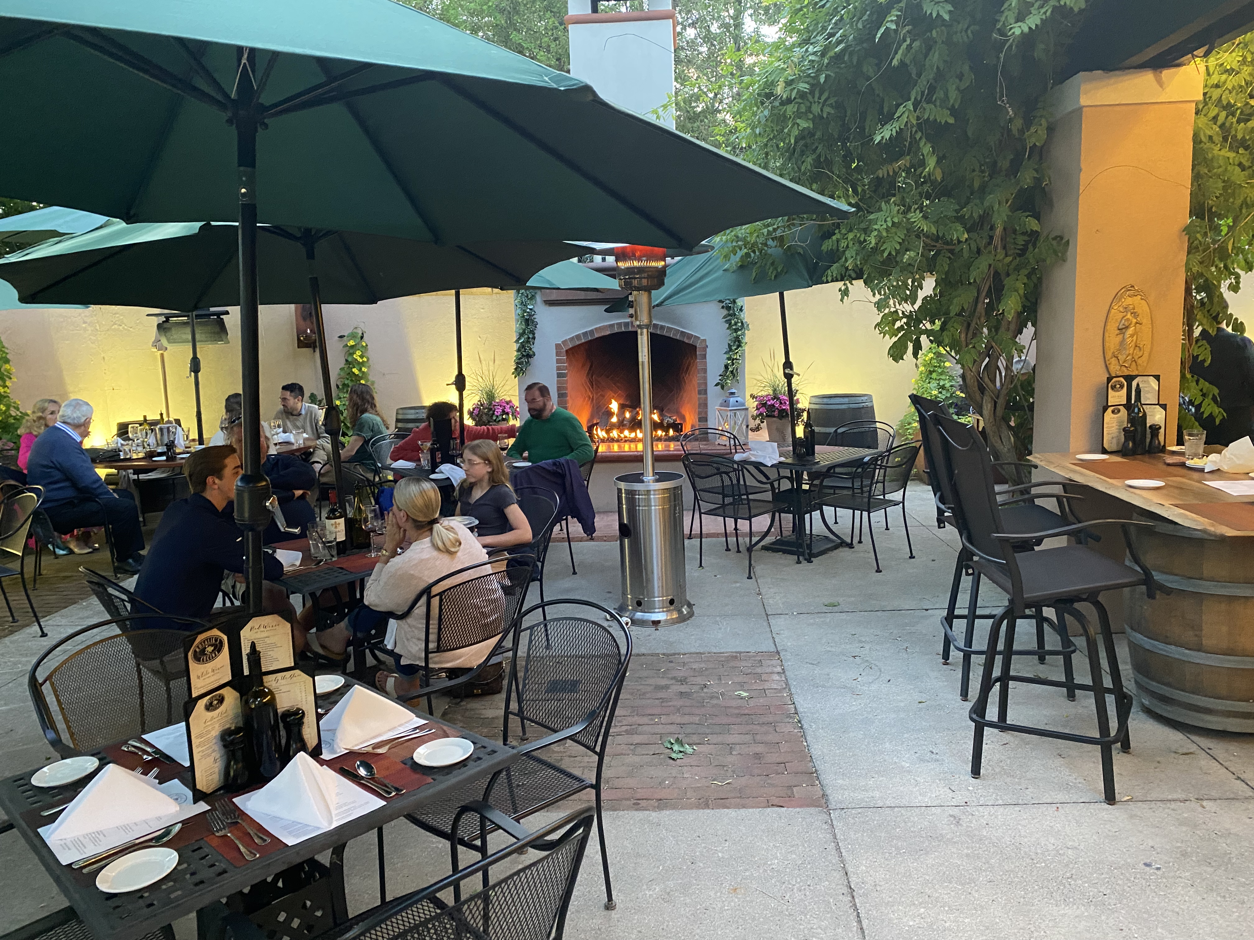 It was a lovely night on the patio, chilly but heated by a fireplace and gas heaters, which made it completely comfortable.