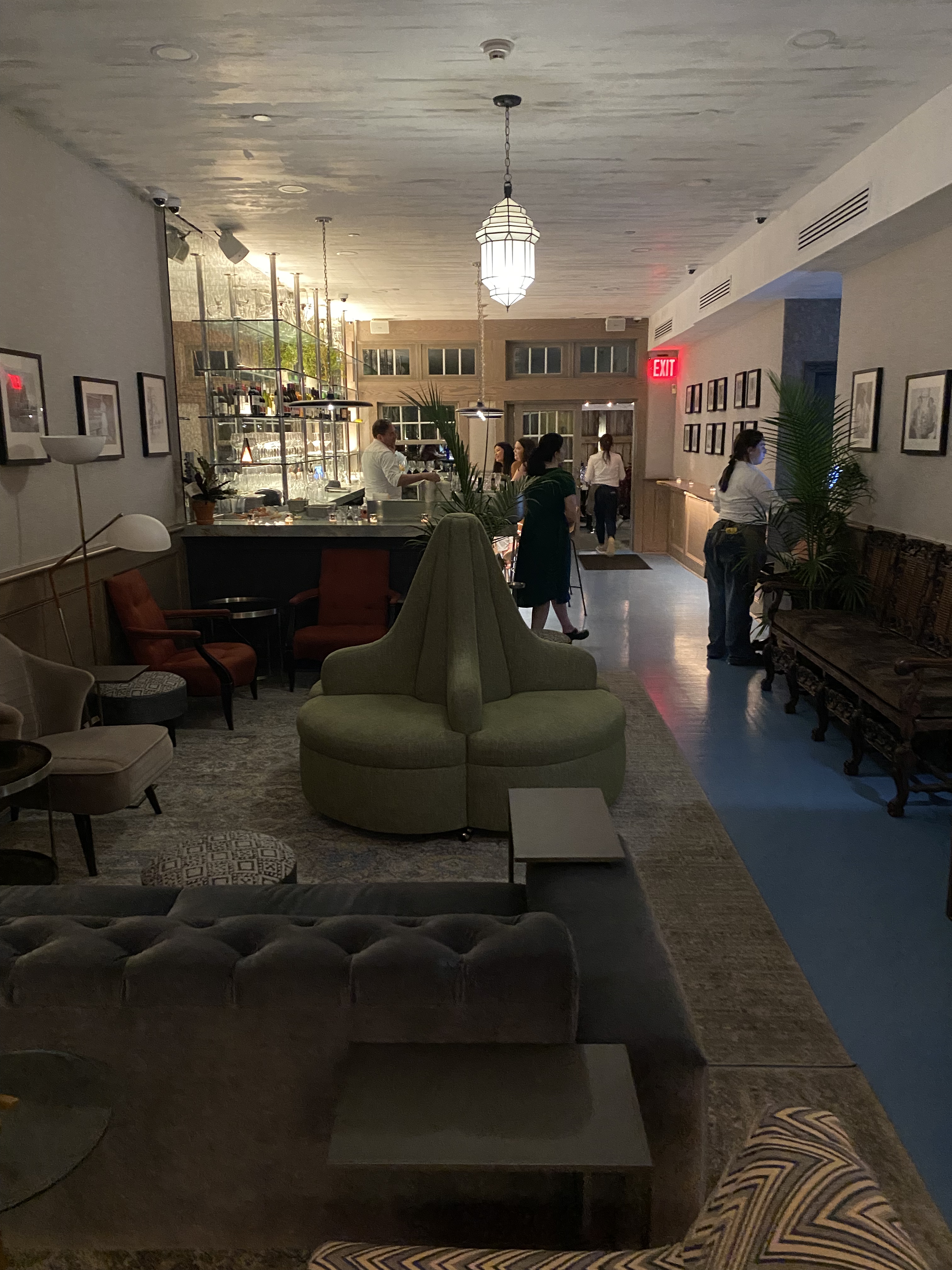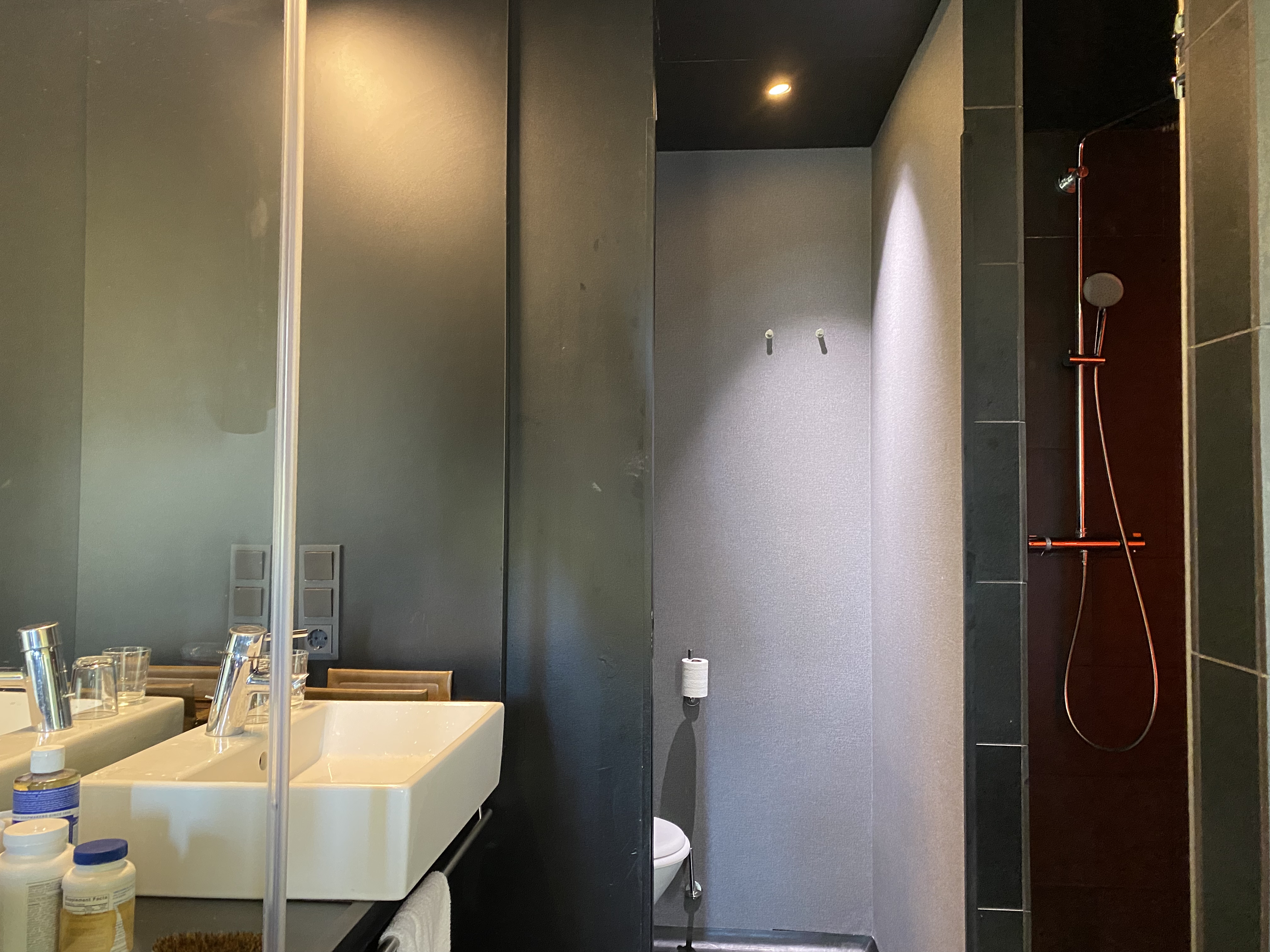 This gets an A for design. Service was good too, but the food was unexciting. We chose the 3-course menu. There are no choices. You get sea trout, flank steak and a blackberry dessert. There were also two amuse-bouches and a miniature jelly doughnut (not very good) following the dessert. The dessert was very good, but overall there was nothing exceptional about Volt. With a bottle of wine for 40 euros and tip, the total was 218.