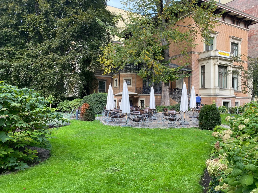 A quick taxi ride to the hotel (the Axel) got us there by 9:30 and of course it was too early for check-in, so we dropped our bags and went for a long stroll before having lunch at noon. Fasanenstrasse is a particularly pretty street, with significant late 19th and early 20th century architecture.