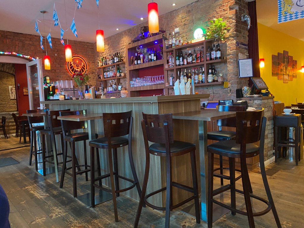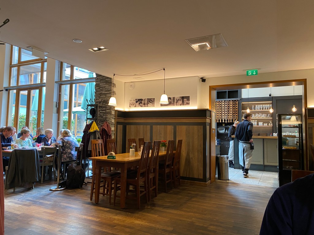 We had planned to have lunch in the adjacent rooftop restaurant, but it was closed for a private event. Just as well, as it is expensive and the menu is extremely limited. Instead we found a nice place nearby that was very good and reasonably priced, Hopfingerbrau.
