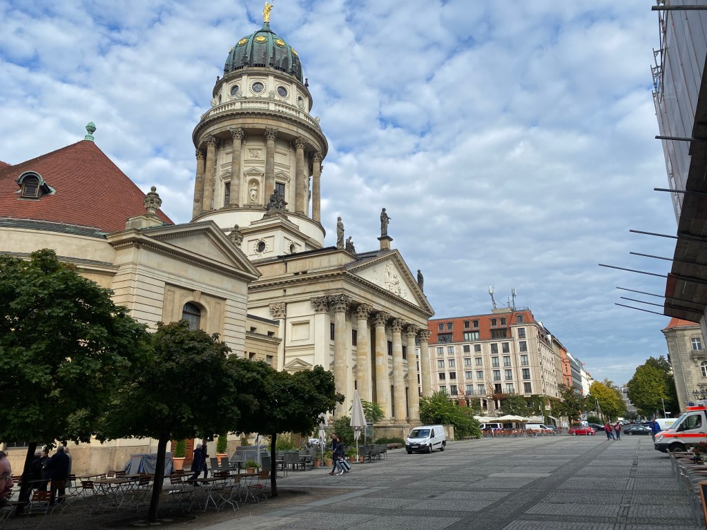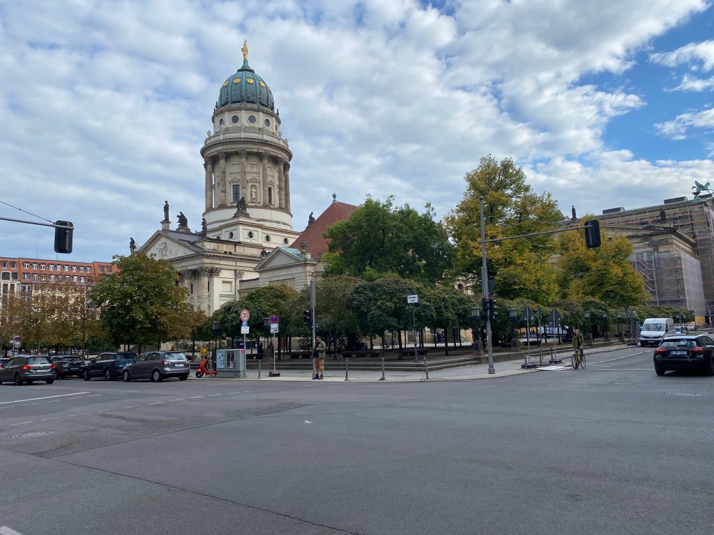After that we took the subway to Stadtmitte, the old city center in East Berlin, walking up Charlottenstrasse, past the Gendarmenmarkt and the three buildings framing it, the German and French cathedrals and the concert hall.