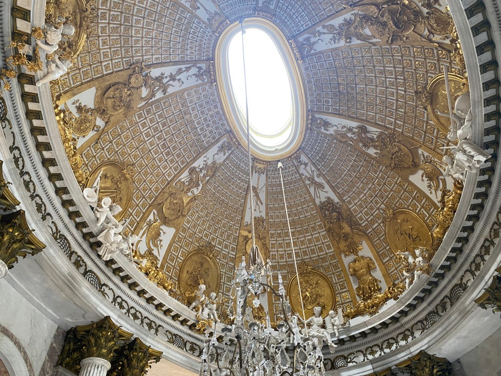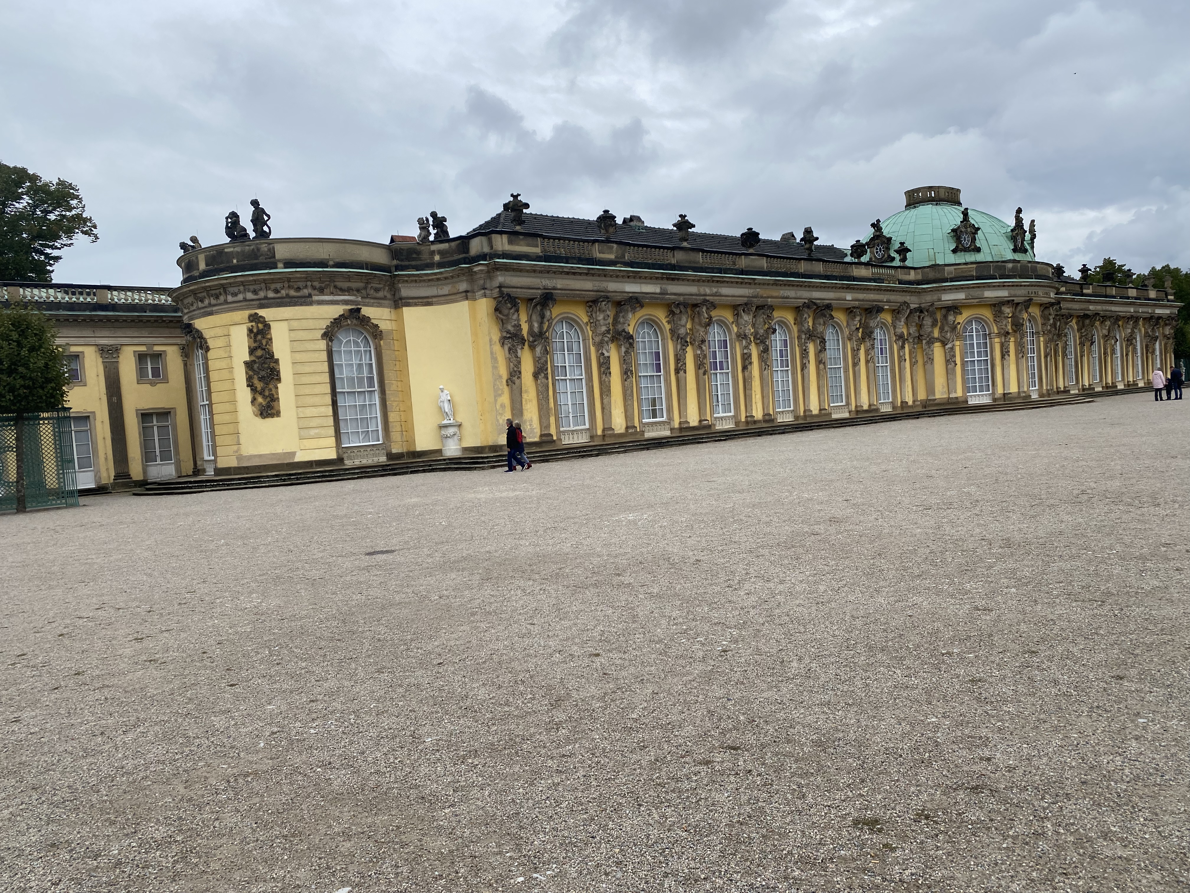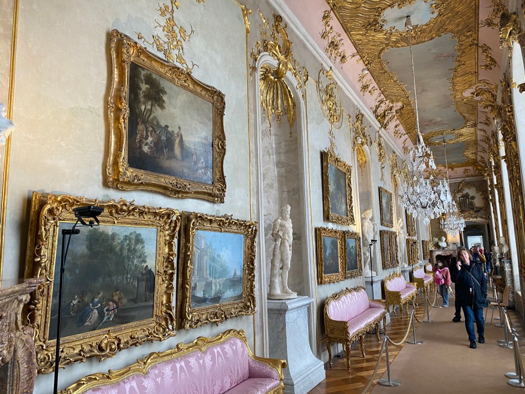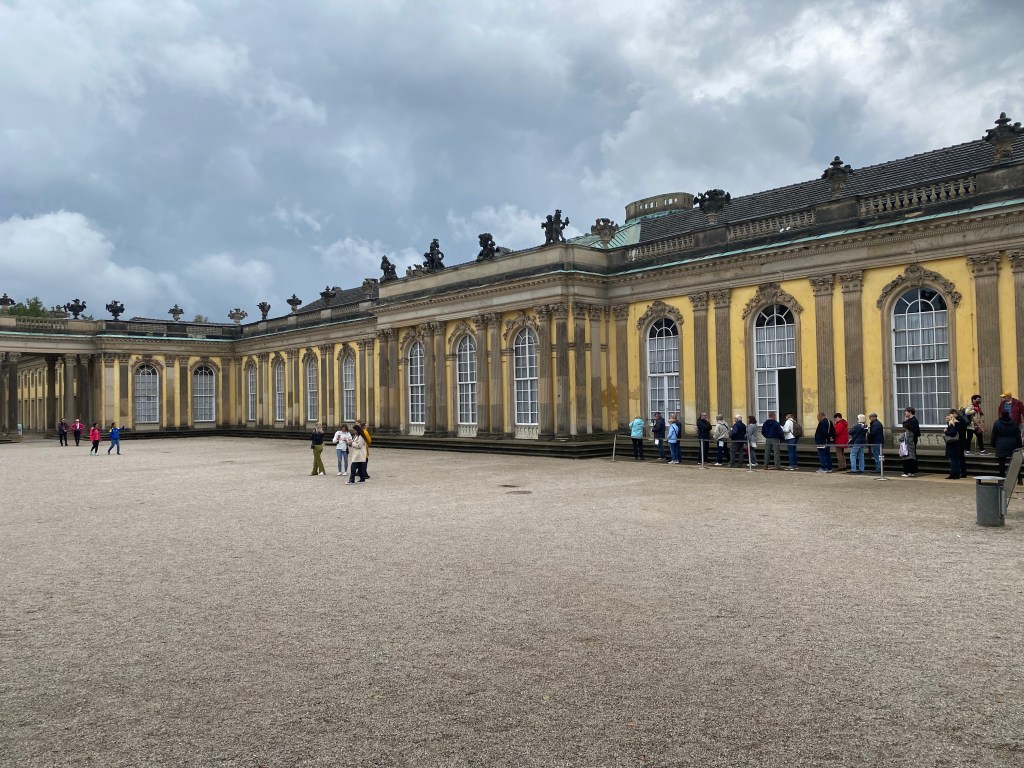 This was our day in Potsdam to tour the Sanssouci Palace, which was built by Frederick the Great. We took the U-bahn, S-bahn and a taxi and arrived just in time for our 11:40 tour. It was curious that the audioguide gave a wealth of information about the palace, who many of the guest were, and much about Frederick himself, but absolutely no mention of the fact that he was gay.