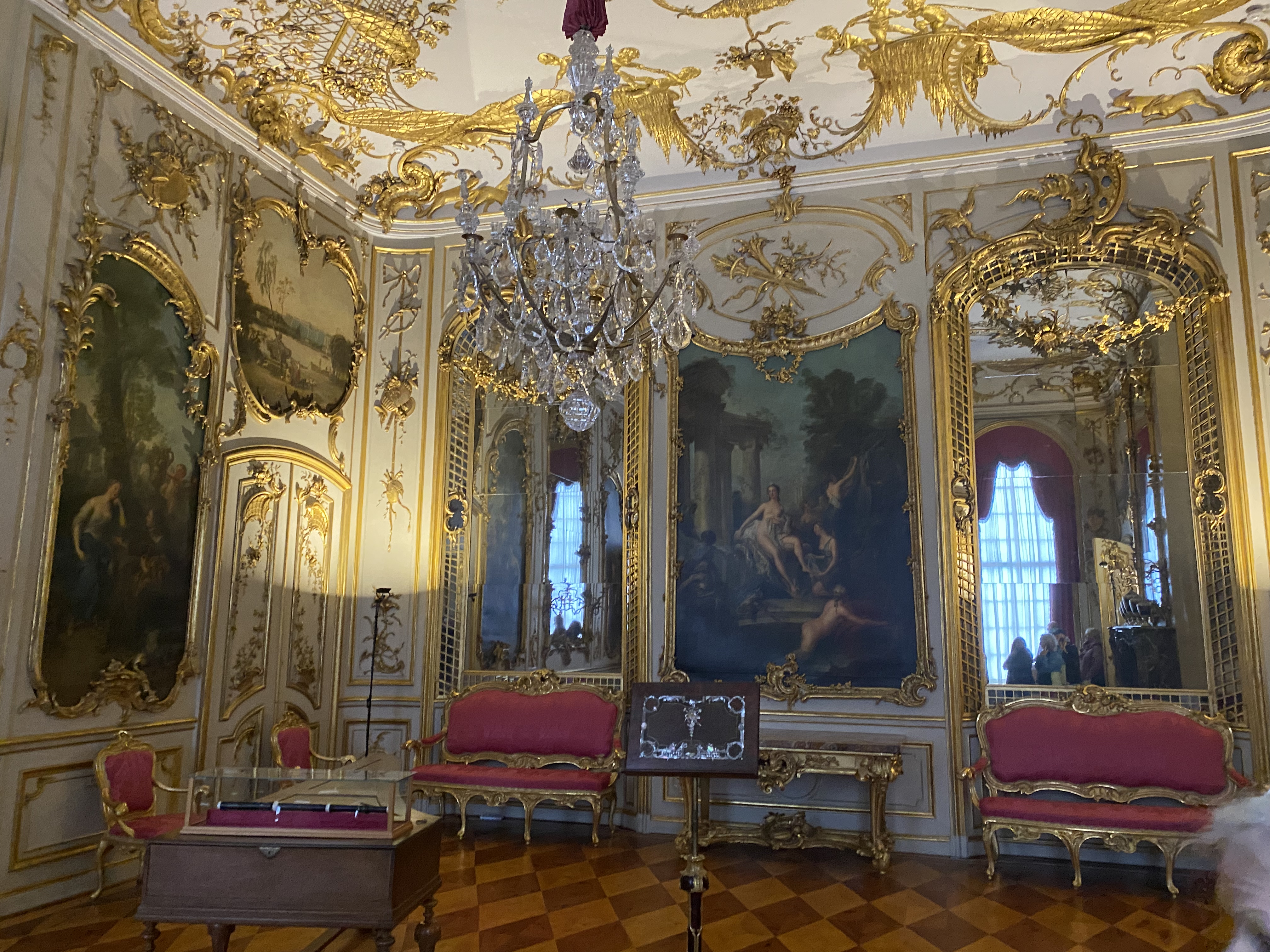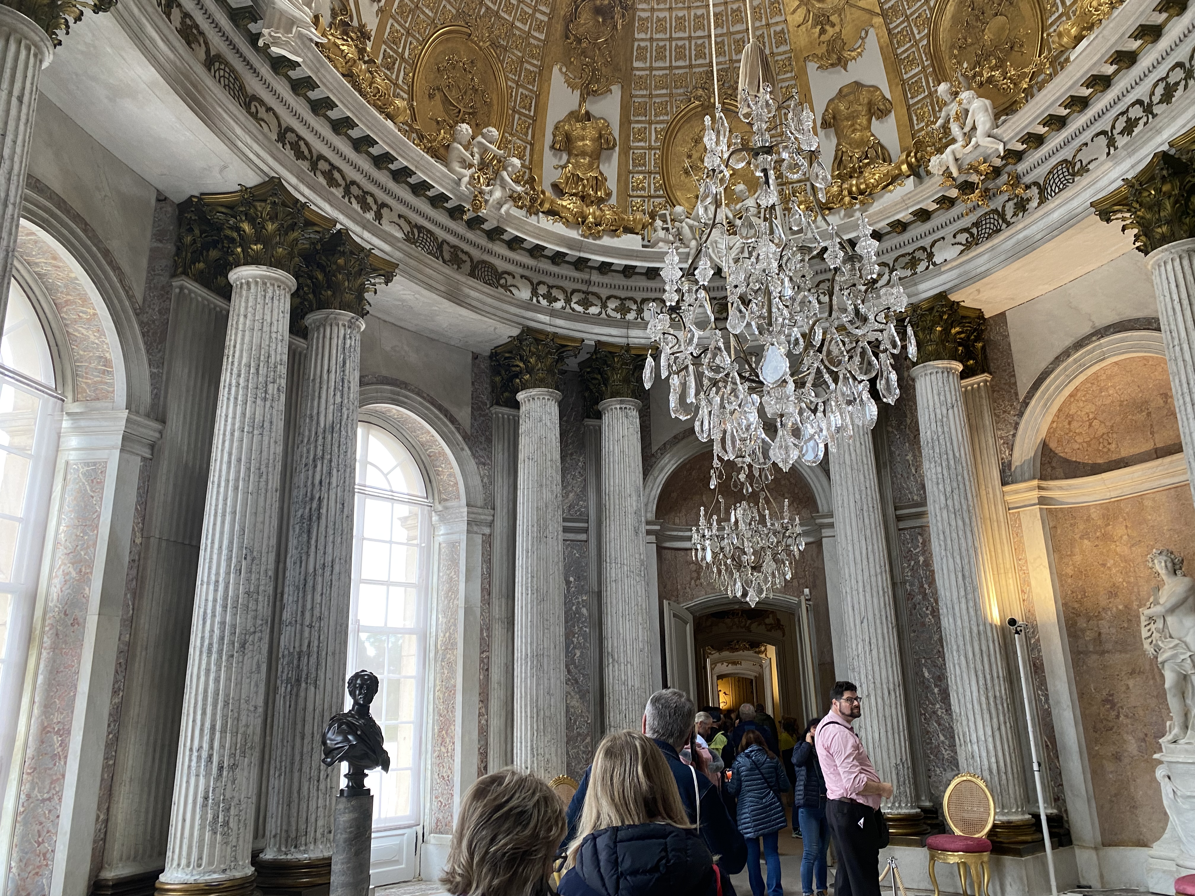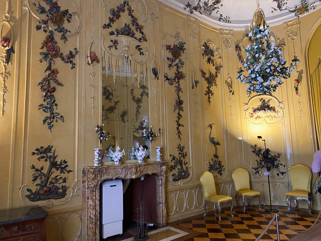This was our day in Potsdam to tour the Sanssouci Palace, which was built by Frederick the Great. We took the U-bahn, S-bahn and a taxi and arrived just in time for our 11:40 tour. It was curious that the audioguide gave a wealth of information about the palace, who many of the guest were, and much about Frederick himself, but absolutely no mention of the fact that he was gay.