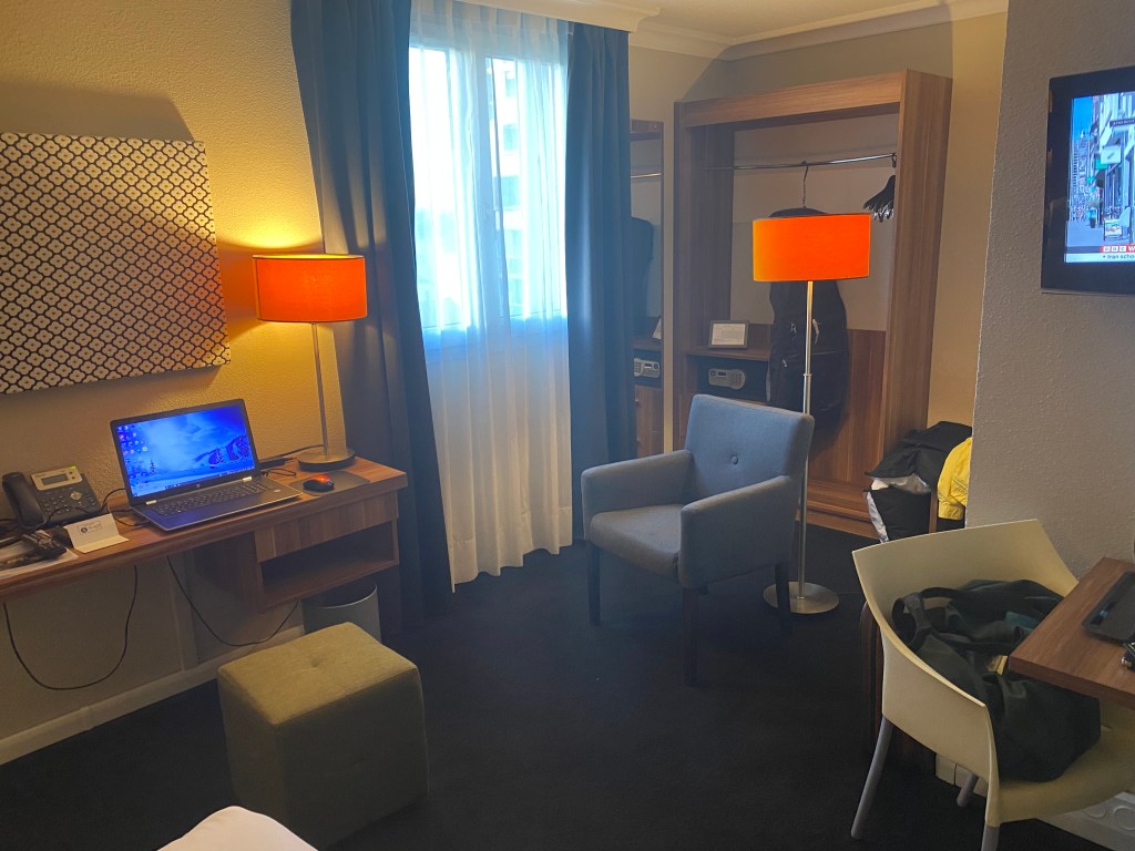 The room was quite large and very quiet, with a kitchenette, and a bathroom with a big walk-in shower.