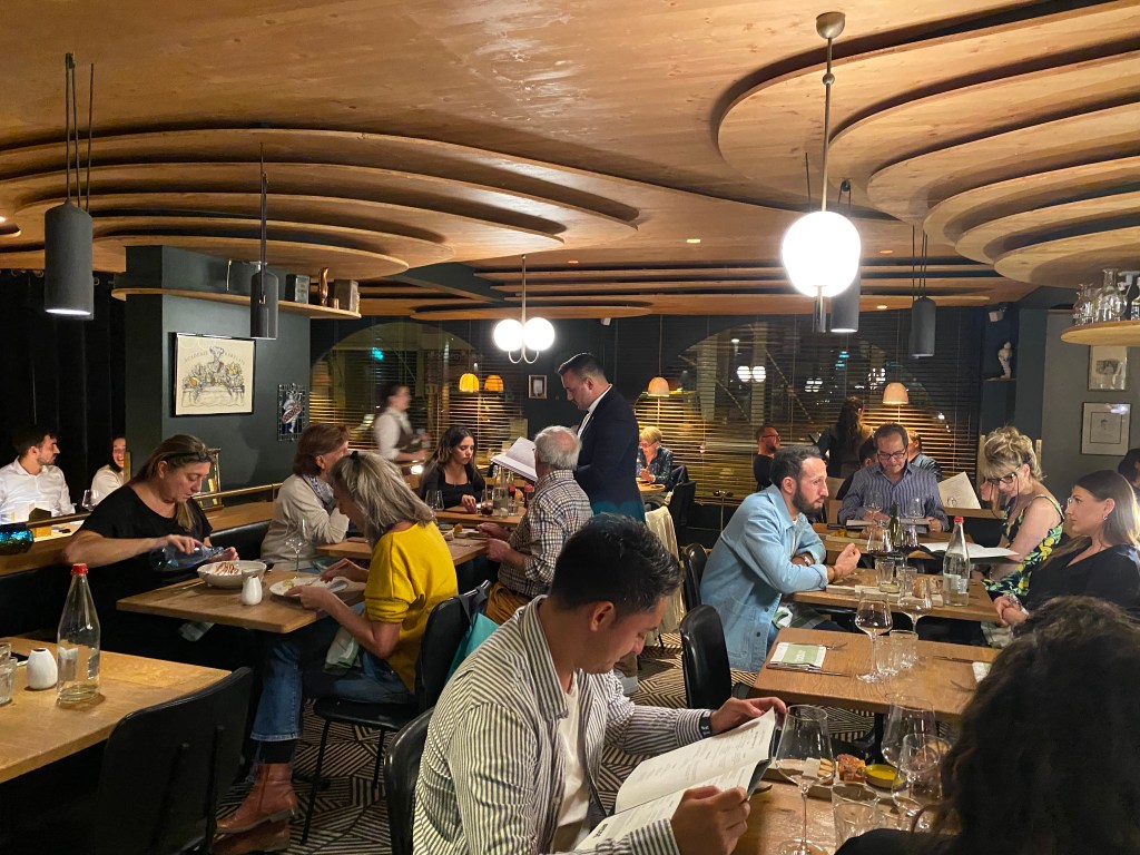 With an excellent bottle of Crozes Hermitage, water and coffee, the bill was 135.