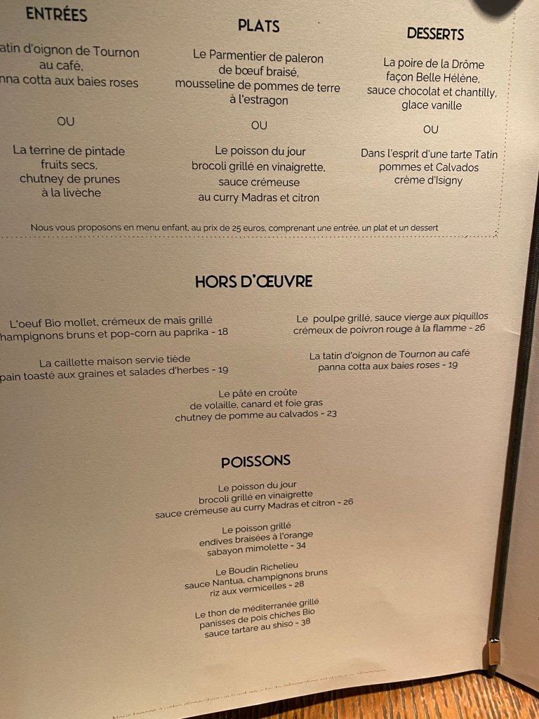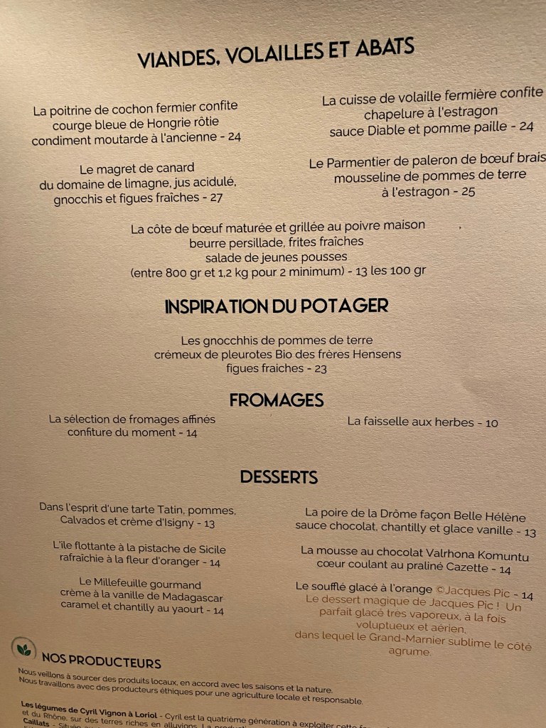 Dinner in Valence was at Flaveurs, which has a Michelin star. I’m not sure it was deserved.