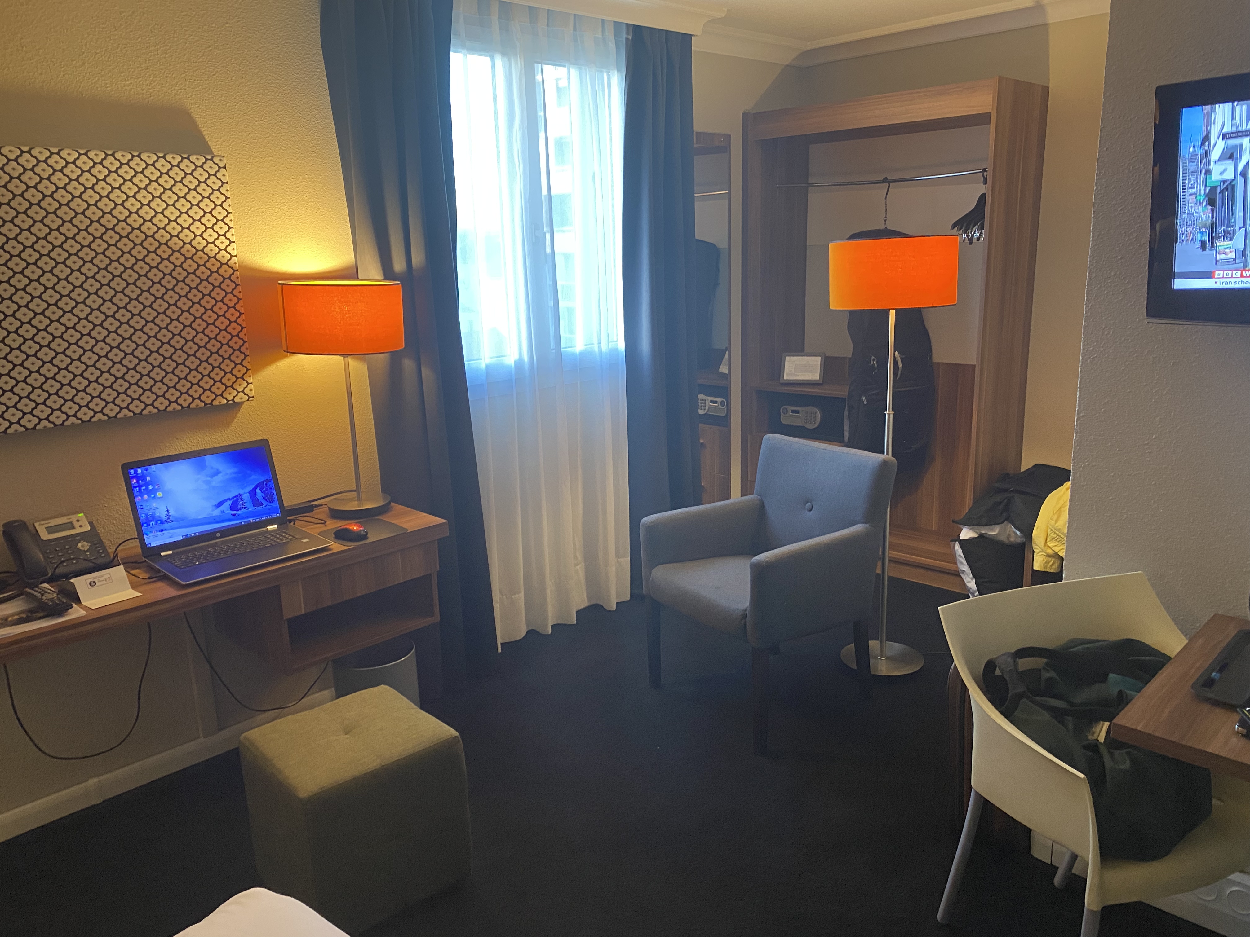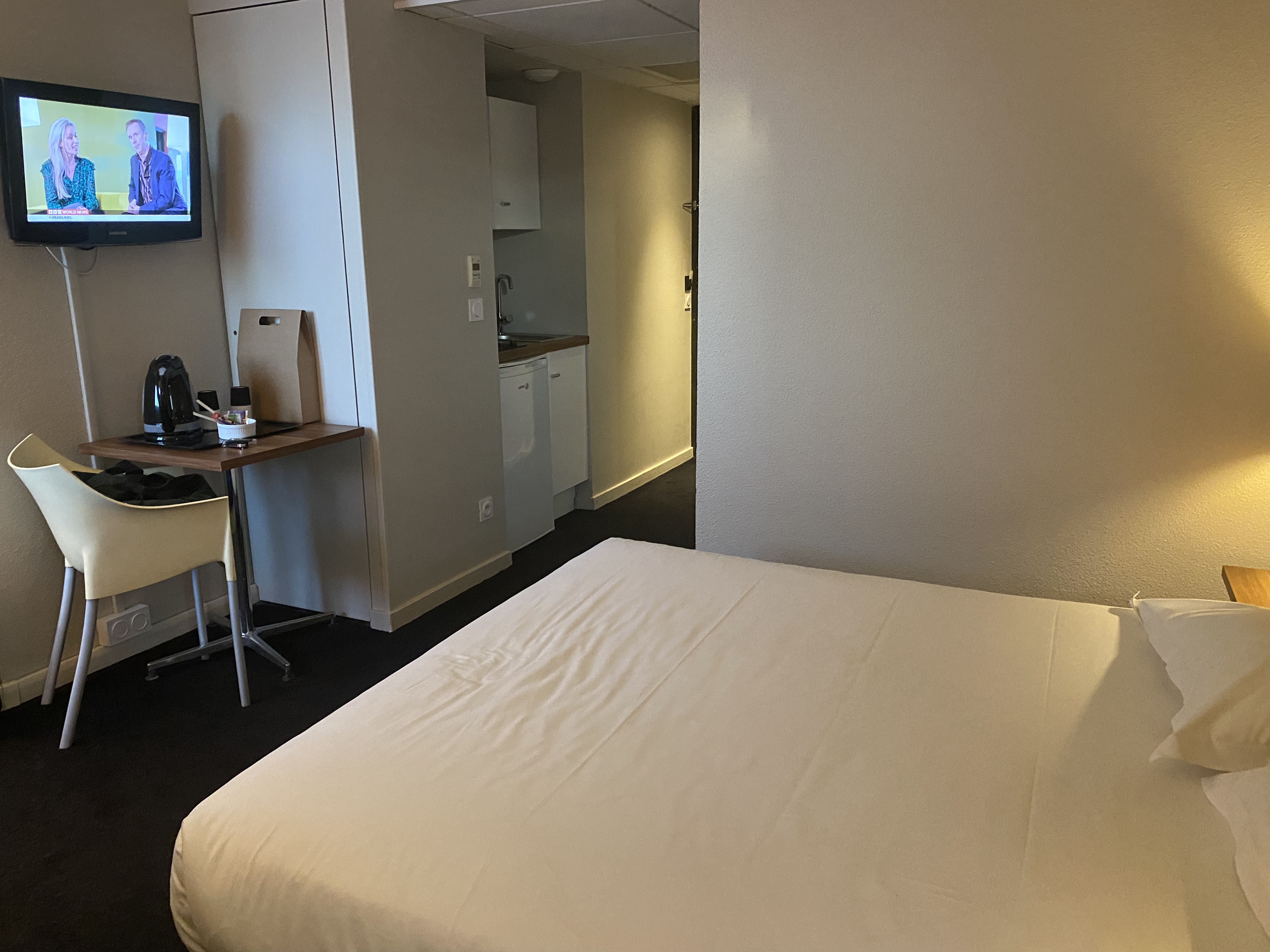 The room was quite large and very quiet, with a kitchenette, and a bathroom with a big walk-in shower.
