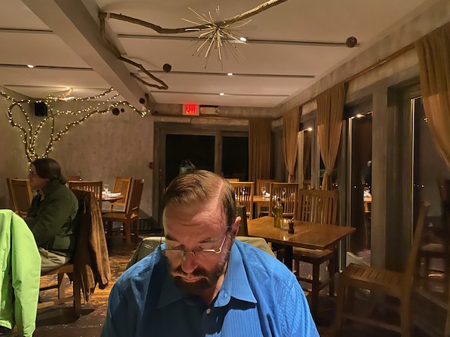 We started with fried calamari, and ricotta gnocchi. The calamari were nice and tender, and the gnocchi were in a light broth with speck, kale and sage (I’m not a fan of kale, but in this case it did not detract). For mains I had rainbow trout with bok choy and potatoes (I substituted mashed for fingerlings, a smart choice). Stanley had duck breast with leg confit. The spices and accompaniments were especially good. For dessert we had the coffee custard, which was exceptional.