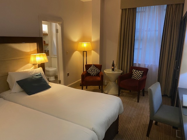 After lunch we stopped into a wine shop just down the street where we picked up a bottle of cream sherry. It began to rain so we ordered an Uber for the short trip back to the hotel, where we were then able to check in. Our room was in the back so avoided street noise and was quite spacious, with a very large bathroom. A nice touch is the HVAC unit so you can set a temperature and get heat or a/c as needed. The location is incredibly convenient to everything, with buses stopping right in front and subway a few blocks over. I just can’t say enough good things about this hotel. For about $550 for 2 nights, it is the best deal I could find in London.