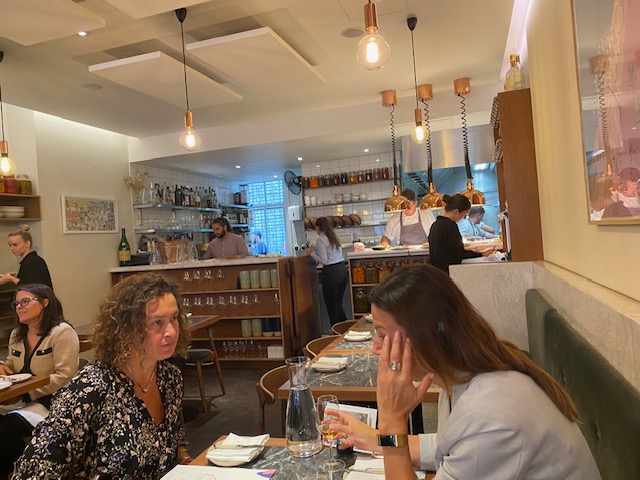 We set off to dinner at the Ivy in heavy rain, so we caught a bus. The Ivy is an old favorite and is as good as ever.