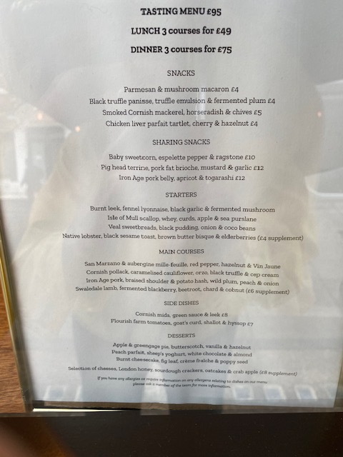 The 49 GBP 3-course menu is a bargain for the quality of the food. The menu had changed slightly from the above one posted in the window. We ordered the following: